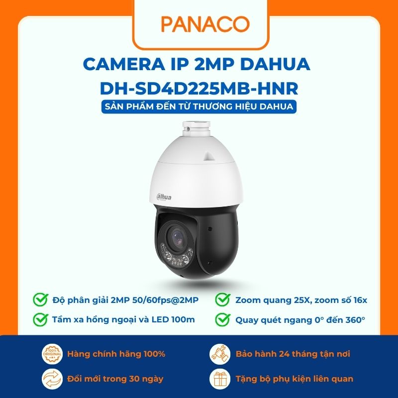 Tại Panaco, camera IP PTZ Dahua DH-SD4D225MB-HNR niêm yết rõ ràng ……VNĐ, chính hãng, mới nguyên hộp, bảo hành đầy đủ – không phát sinh, không gắn thêm chi phí vô lý.