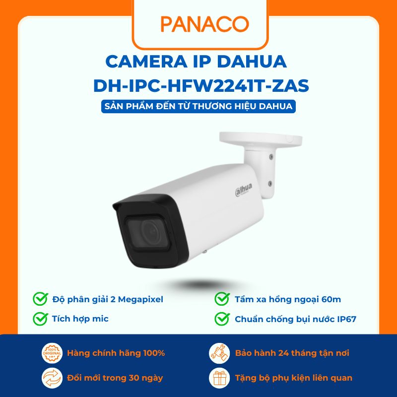 Panaco hiện là đơn vị phân phối và lắp đặt camera Dahua chính hãng, trong đó DH-IPC-HFW2241T-ZAS là mẫu bán chạy nhờ độ bền cao, giá hợp lý và độ ổn định tốt.