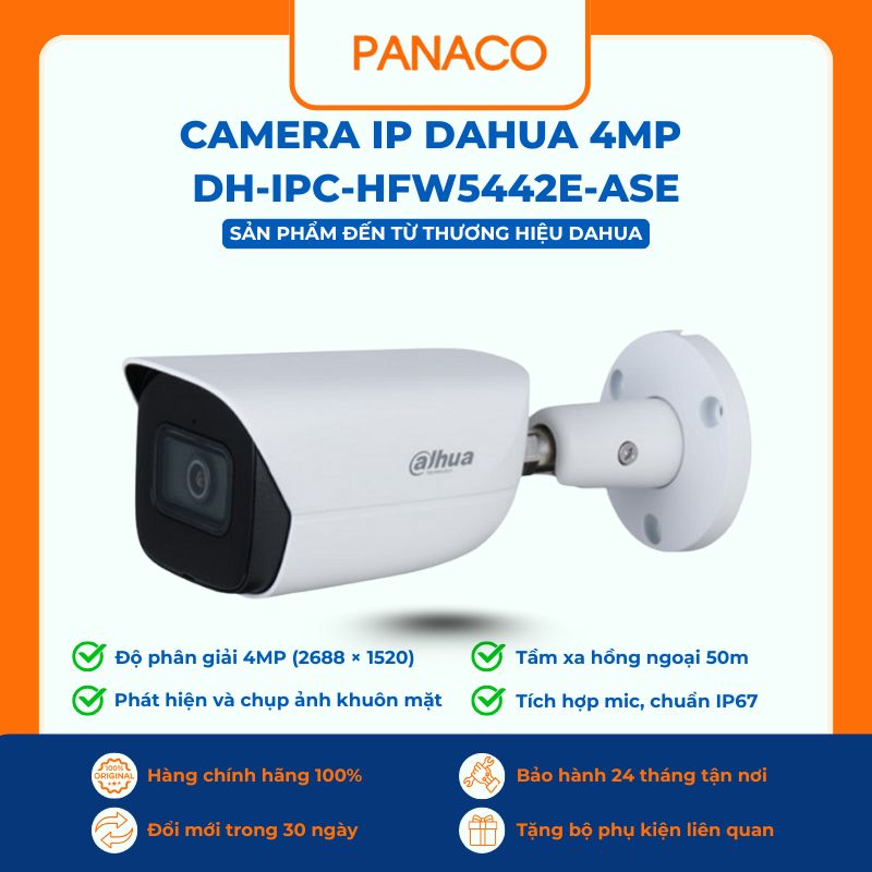 Panaco cung cấp Dahua DH-IPC-HFW5442E-ASE chính hãng 100%, đầy đủ CO–CQ, bảo hành 24 tháng, giá bán minh bạch và giao hàng nhanh toàn quốc. Chúng tôi cam kết tư vấn đúng nhu cầu – cấu hình chuẩn – hỗ trợ kỹ thuật tận tâm, đồng thời có chiết khấu tốt cho đại lý, kỹ thuật và dự án. Nếu anh em cần báo giá tốt nhất hoặc tư vấn triển khai hệ thống WizMind, liên hệ Hotline/zalo 0989 352 251 để biết thêm chi tiết!