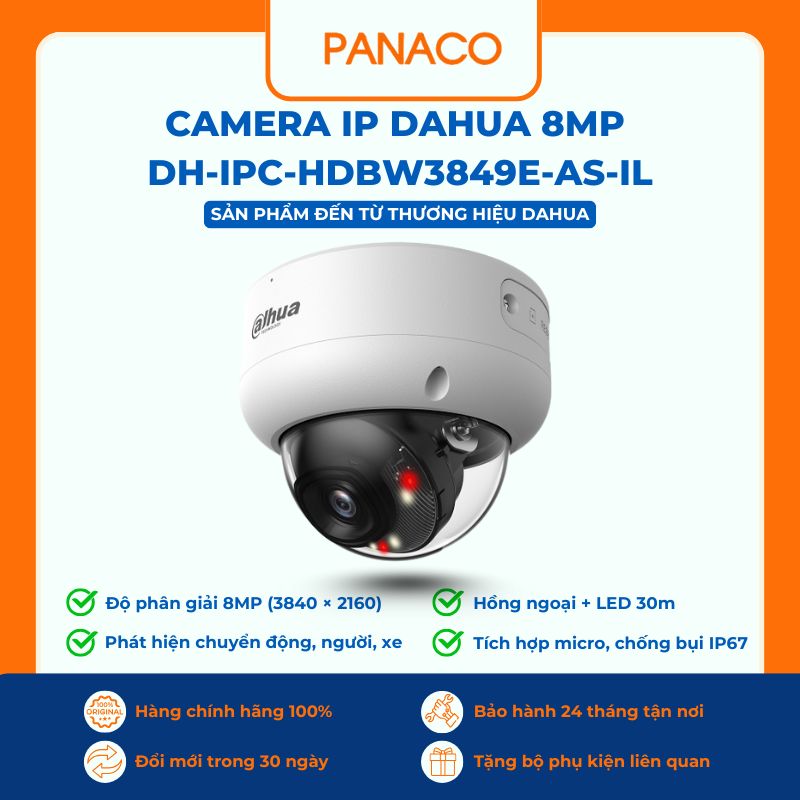 Tại Panaco, camera Dahua DH-IPC-HDBW3849E-AS-IL đang được bán với giá ưu đãi chỉ từ … VNĐ, đi kèm đầy đủ hóa đơn VAT, tem bảo hành chính hãng 24 tháng và hỗ trợ kỹ thuật trực tiếp từ đội ngũ chuyên môn. Khi khách hàng mua số lượng lớn hoặc thi công trọn bộ hệ thống, Panaco còn mang đến mức chiết khấu thương mại hấp dẫn lên đến 15% để tối ưu chi phí cho doanh nghiệp và hộ gia đình.