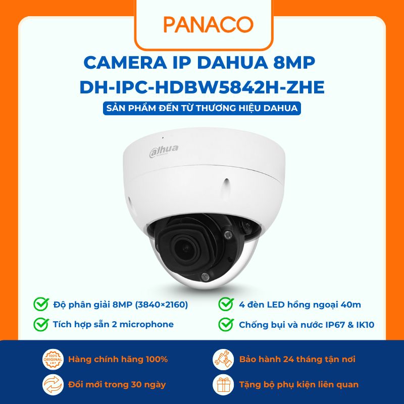 Tại Panaco, camera IP Dahua DH-IPC-HDBW5842H-ZHE có mức giá ưu đãi hơn so với giá niêm yết thị trường, nhưng vẫn đảm bảo đầy đủ chính sách bảo hành chính hãng, hỗ trợ kỹ thuật tận tâm và dịch vụ hậu mãi dài lâu.