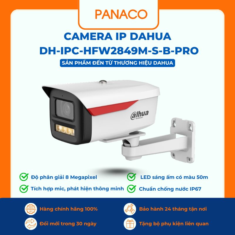 Camera IP 8MP Dahua DH-IPC-HFW2849M-S-B-PRO là lựa chọn mạnh nếu bạn cần hình ảnh rõ nét, chi tiết, lắp đặt ngoài trời, phù hợp cho nhà riêng, sân vườn, cổng, kho, sân xe. Nếu bạn muốn Panaco khảo sát vị trí + báo giá + lắp đặt trọn gói (đi dây, chống nước, cấu hình xem từ xa), đừng ngần ngại liên hệ ngay hotline 0989 352 251 để nhân viên chúng tôi hỗ trợ ngay nhé!