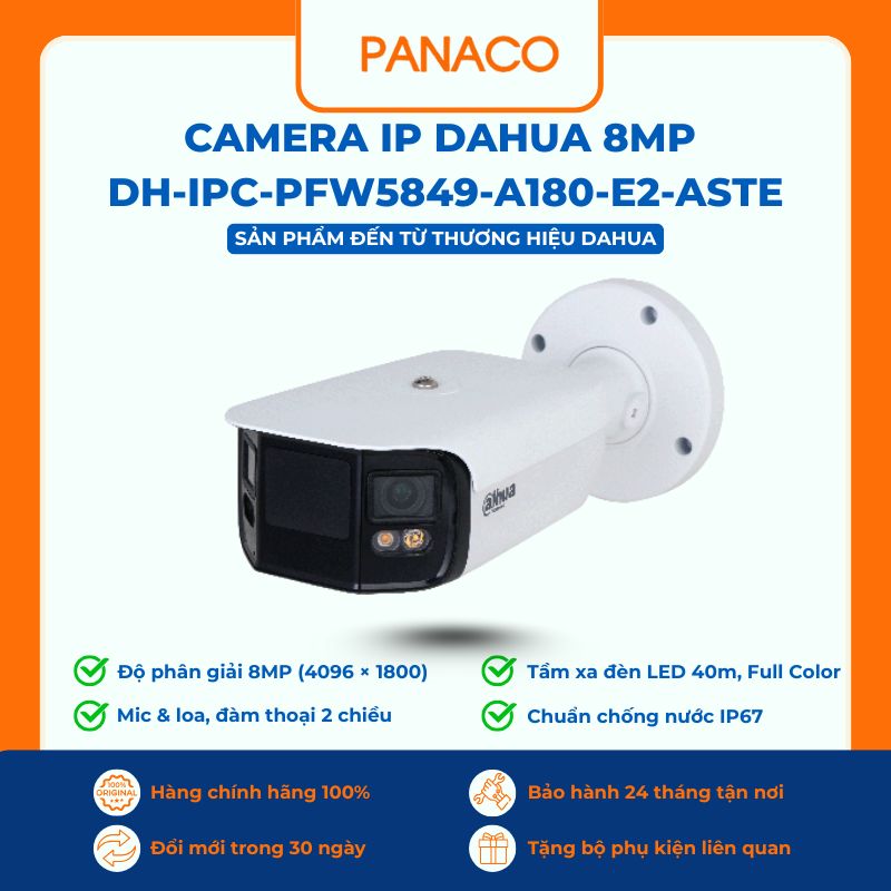 Camera Dahua DH-IPC-PFW5849-A180-E2-ASTE hiện đang được Panaco phân phối với giá lẻ chỉ …. đồng. Panaco cam kết bảo hành chính hãng 24 tháng và hỗ trợ 1 đổi 1 trong 30 ngày đầu sử dụng nếu phát sinh lỗi từ nhà sản xuất. Đặc biệt, đối với khách hàng mua số lượng lớn, Panaco cung cấp mức chiết khấu hấp dẫn, giúp tối ưu hóa chi phí đầu tư. Liên hệ ngay với Panaco để được tư vấn và nhận báo giá sỉ tốt nhất, cùng dịch vụ giao hàng nhanh chóng trên toàn quốc!