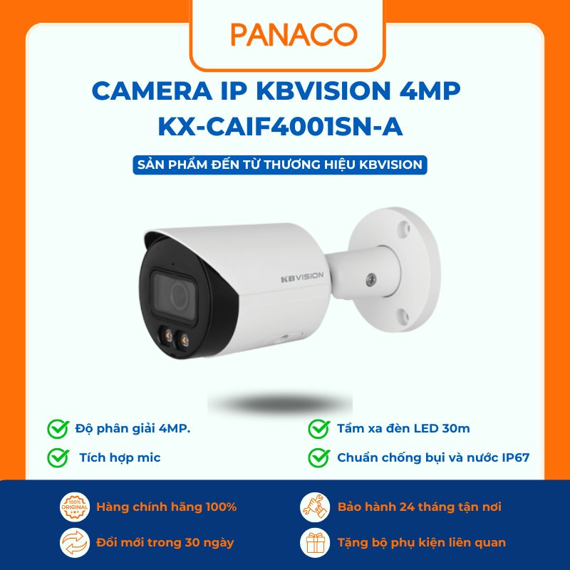 Hiện Panaco là đơn vị phân phối chính hãng camera Kbvision KX-CAiF4001SN-A, cam kết giá tốt – hàng chuẩn – bảo hành 2 năm, đồng thời hỗ trợ tư vấn và lắp đặt tận nơi trên toàn quốc.