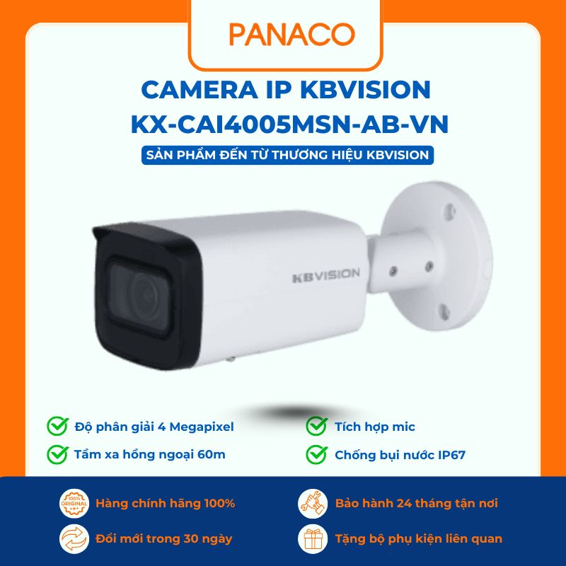 Hiện tại, camera Kbvision KX-CAi4005MSN-AB được Panaco niêm yết ở mức khoảng … VNĐ — một lựa chọn tiết kiệm nhưng vẫn đảm bảo chất lượng hình ảnh sắc nét và ổn định. Đây là dòng camera phù hợp với những nhu cầu giám sát cơ bản, lắp thêm cho nhà, cửa hàng nhỏ hoặc văn phòng vừa và nhỏ.