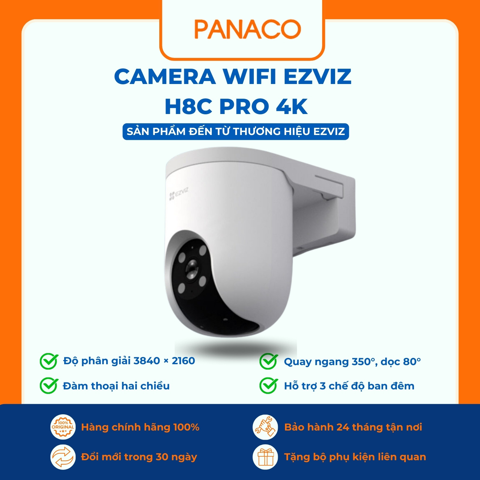 Panaco phân phối camera Ezviz H8C Pro 4K chính hãng, bảo hành đầy đủ, giá minh bạch, hỗ trợ tư vấn chọn camera phù hợp – báo giá tốt – lắp đặt miễn phí. Liên hệ Zalo/Hotline 0989 352 251 để được hỗ trợ nhanh và tận tâm!