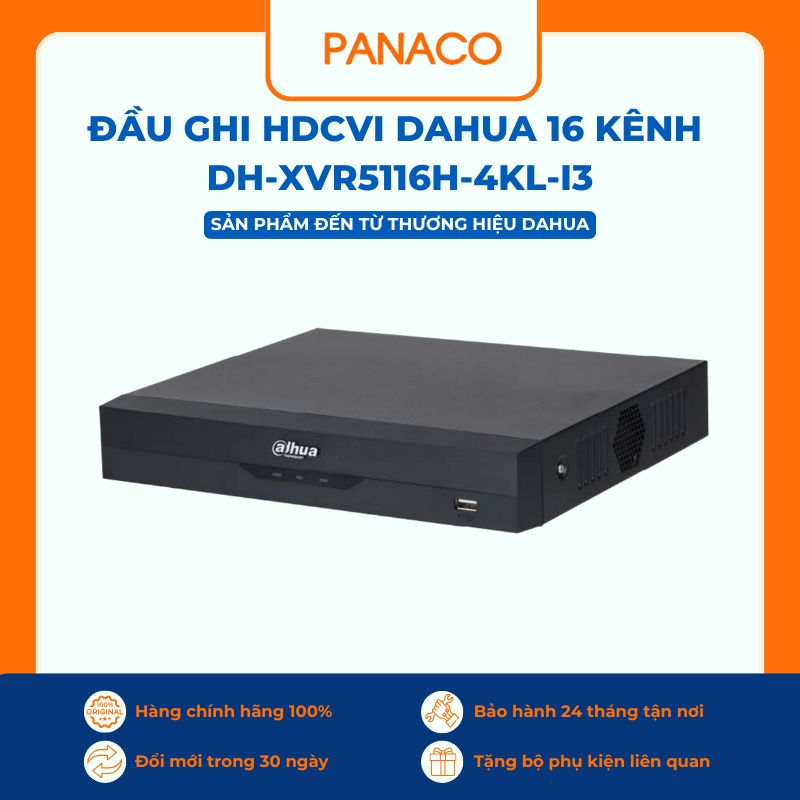 Panaco cung cấp đầu ghi Dahua DH-XVR5116H-4KL-I3 chính hãng 100%, đầy đủ tem bảo hành, giấy tờ xuất xứ rõ ràng, đảm bảo đúng tiêu chuẩn của Dahua, không hàng dựng, không hàng trôi nổi.