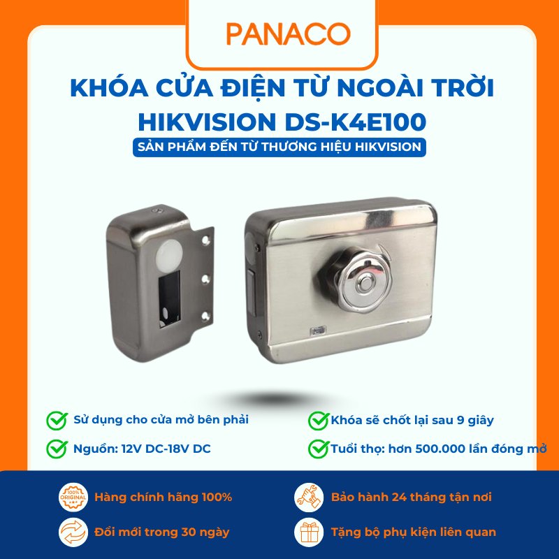 Khóa sử dụng nguồn điện 12V DC và có thể tích hợp linh hoạt với mọi loại chuông cửa có hình cũng như các hệ thống kiểm soát ra vào hiện đại. Nhờ độ an toàn cao và khả năng bền bỉ, DS-K4E100 là lựa chọn lý tưởng cho nhiều ứng dụng, từ nhà ở dân dụng đến các cổng trường học, khách sạn và nhà máy. Sản phẩm hiện đang có giá ưu đãi tốt cùng chính sách bảo hành 24 tháng trên toàn quốc tại Panaco.vn.