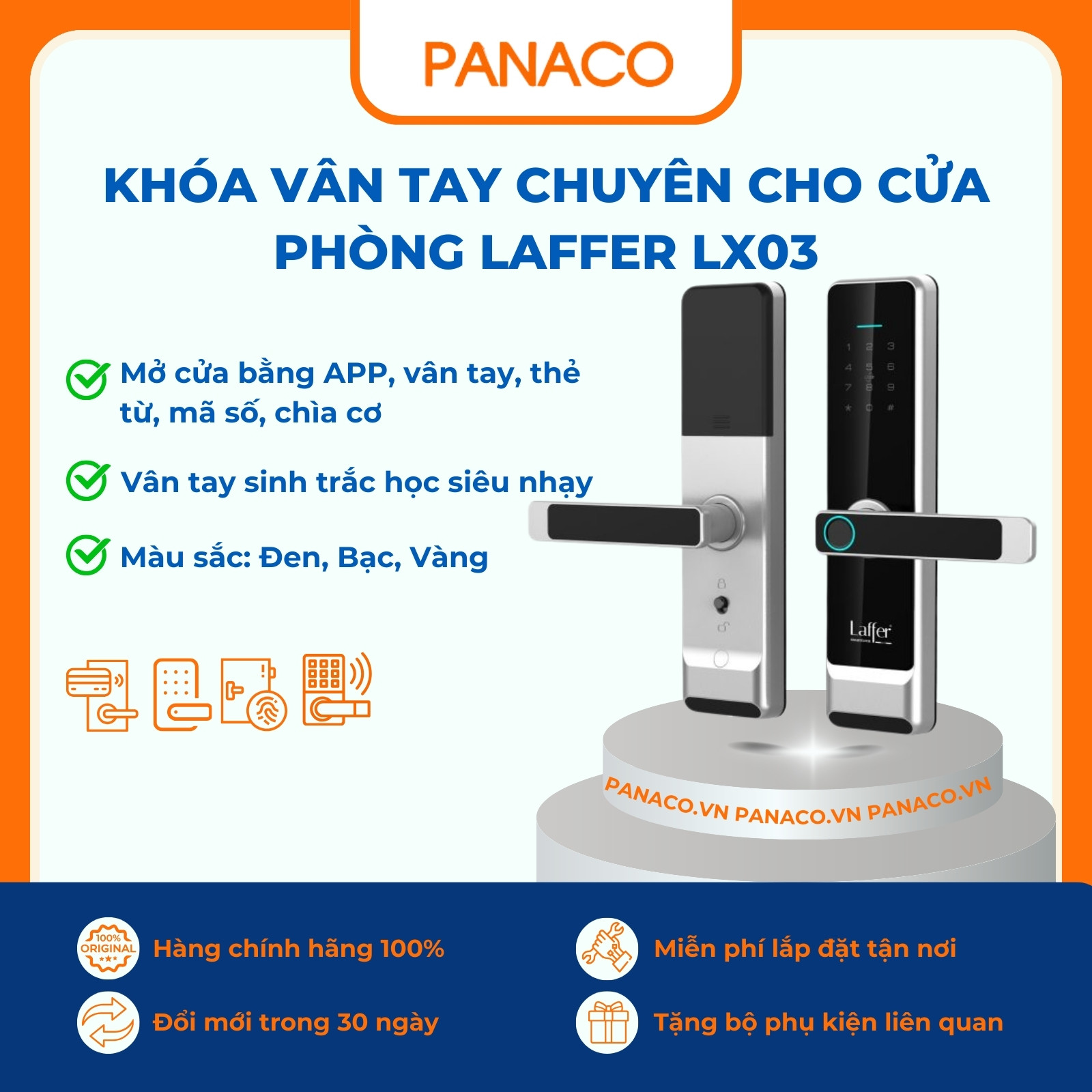 Panaco đang niêm yết khóa vân tay LX03 với mức giá chỉ ….. VNĐ – một con số vô cùng hợp lý cho dòng khóa hiện đại, bảo mật cao. Với số tiền này, khách hàng có thể sở hữu ngay một giải pháp an ninh tiên tiến, mở khóa nhanh chóng bằng vân tay, mã số, thẻ từ và chìa cơ dự phòng.