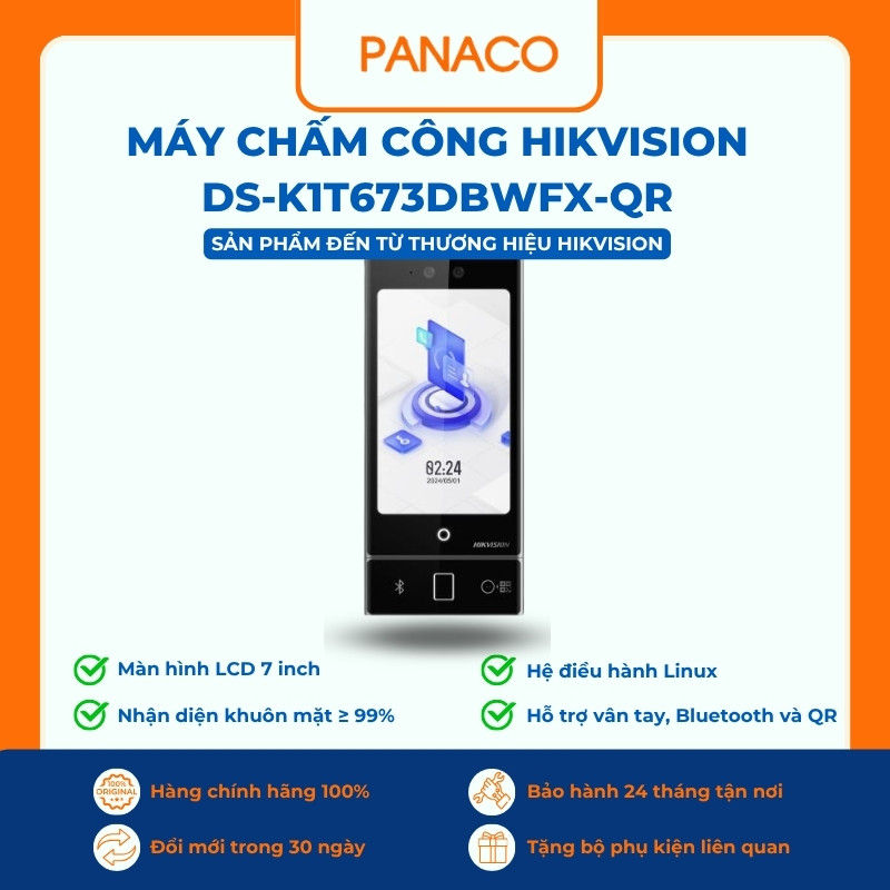 Panaco hiện phân phối DS-K1T673DBWFX-QR chính hãng, hỗ trợ tư vấn giải pháp chấm công – kiểm soát ra vào, cấu hình phần mềm và lắp đặt trọn gói, giá minh bạch. Liên hệ Zalo/Hotline 0989 352 251 để được hỗ trợ nhanh và đúng kỹ thuật.