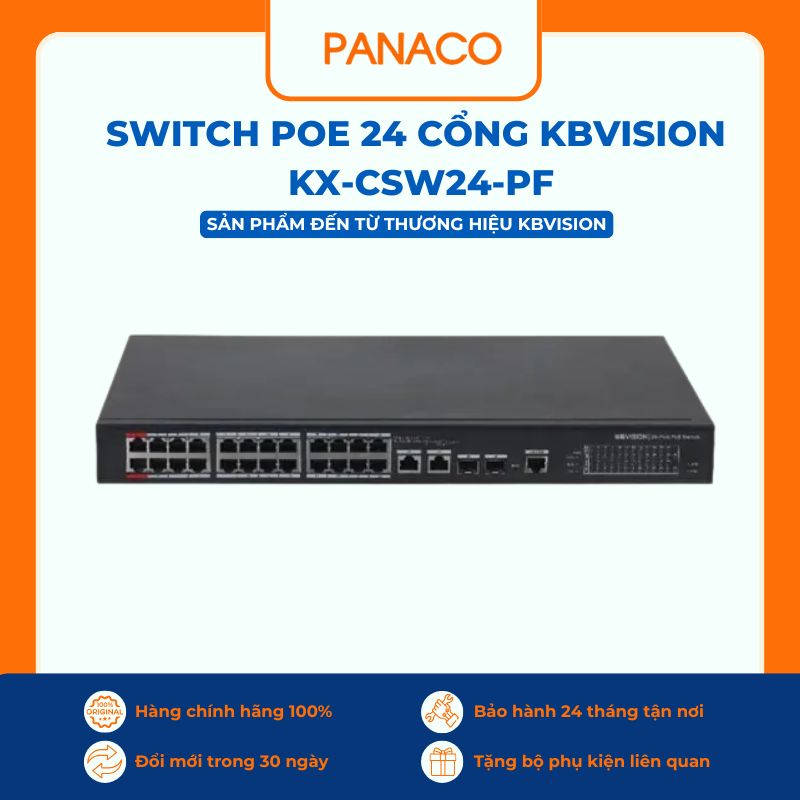 Đừng chờ đợi nữa, đây là cơ hội có 1 không 2 để sở hữu được switch PoE Kbvision 24 cổng KX-CSW24-PF chất lượng vượt trội. Giá cả và hậu mãi không còn là vấn đề khi mua hàng tại Panaco.