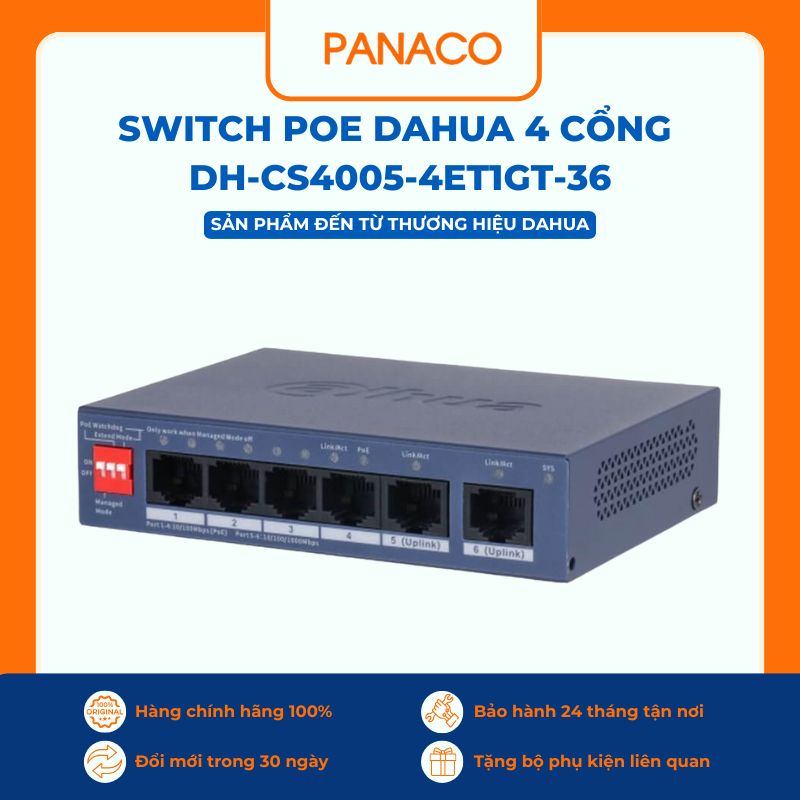 Panaco phân phối Switch Cloud 5 cổng Dahua DH-CS4005-4ET1GT-36 chính hãng, bảo hành chính hãng và giá bán minh bạch rõ ràng. Nếu anh em cần tư vấn cấu hình, chọn switch phù hợp với hệ thống camera hoặc lắp đặt miễn phí, vui lòng liên hệ Zalo/Hotline 0989 352 251 để được Panaco hỗ trợ nhanh và tận tâm.