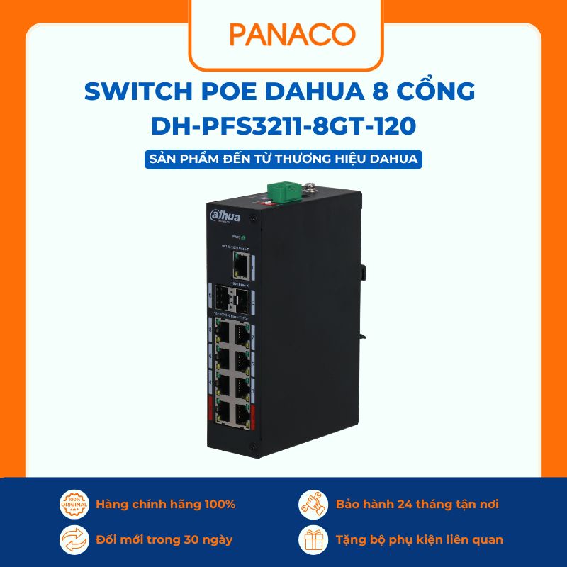 Switch Dahua DH-PFS3211-8GT-120 đang được phân phối với giá ưu đãi đặc biệt và chế độ bảo hành 24 tháng chính hãng trên toàn quốc tại Panaco. Đây chắc chắn là sự đầu tư thông minh để bảo vệ và tối ưu hóa hiệu suất cho hạ tầng an ninh của bạn.